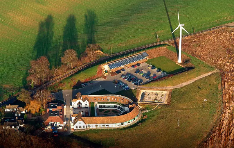 L'ancienne ferme d'élevage d'œufs Ovaltine, qui hébergeait des poulets, est aujourd'hui alimentée par des énergies renouvelables.