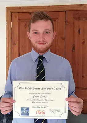 A student from Exeter University is celebrating after being awarded a cash prize from the world’s largest independent renewables company in recognition of his professionalism during his course.