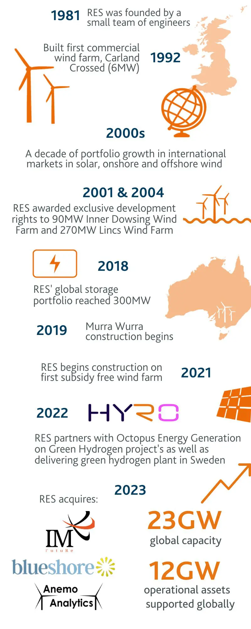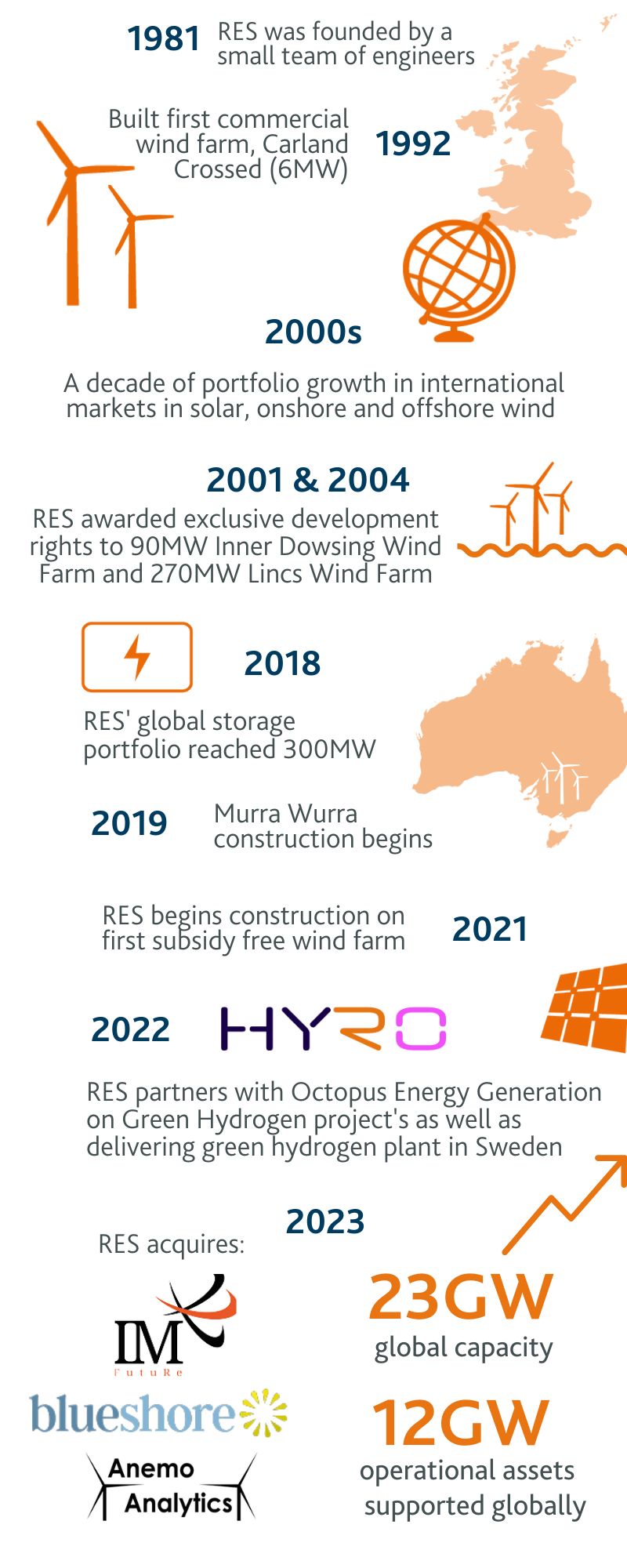 RES started its journey into renewables in 1981, born from a small special projects team and group of wind energy pioneers undertaking research into wind turbines. Over the past 40 years we have grown substantially and now employ 2,500 people across 13 countries. Reaching the milestone of 12GW of operational assets supported globally, we reflect on just how far the industry, and RES, has come in that time.![]()