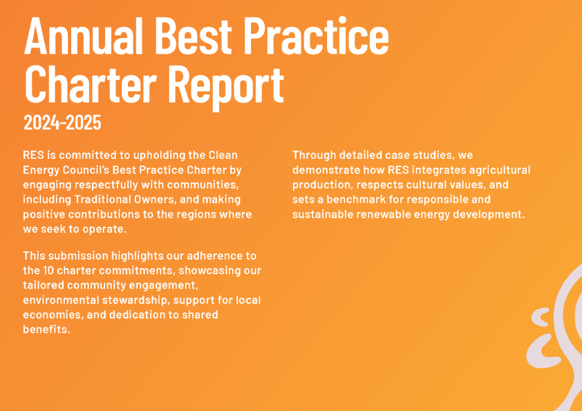 “Our ongoing commitment to the Clean Energy Council’s Best Practice Charter reflects the way we work – with transparency, integrity, and respect. Our 2025 report demonstrates how these principles are embedded across our projects and partnerships. By collaborating closely with landholders, Traditional Owners, and local communities, we aim to deliver renewable energy projects that create a positive and lasting legacy for Australians and for the planet.” — Matt Rebbeck, RES CEO Australia
