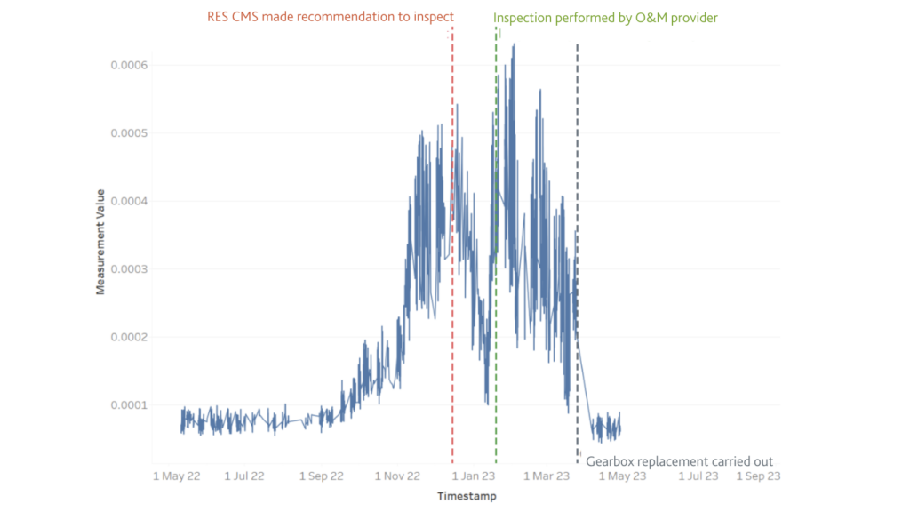 At RES, we use wind turbine drivetrain data, typically vibrational and oil data, which is taken from the CMS system and combined with other data types, such as SCADA data. This data allows our engineers to gather a full picture of asset health, enabling short term and strategic longer-term maintenance decisions to be made. For instance, we can identify anomalies that otherwise may not be picked up, preventing major component failure.